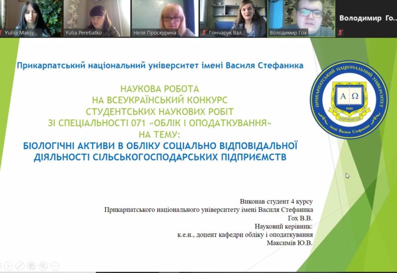 Наш студент представив на конкурс наукову роботу на тему “Біологічні активи в обліку соціально відповідальної діяльності сільськогосподарських підприємств”. Науковий керівник – кандидат економічних наук, доцент кафедри обліку і оподаткування економічного факультету Юлія Максимів.