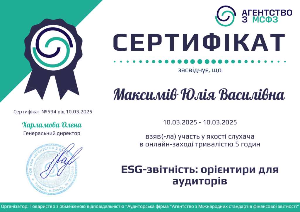 Вебінар на тему “ESG-звітність: орієнтири для аудитора”