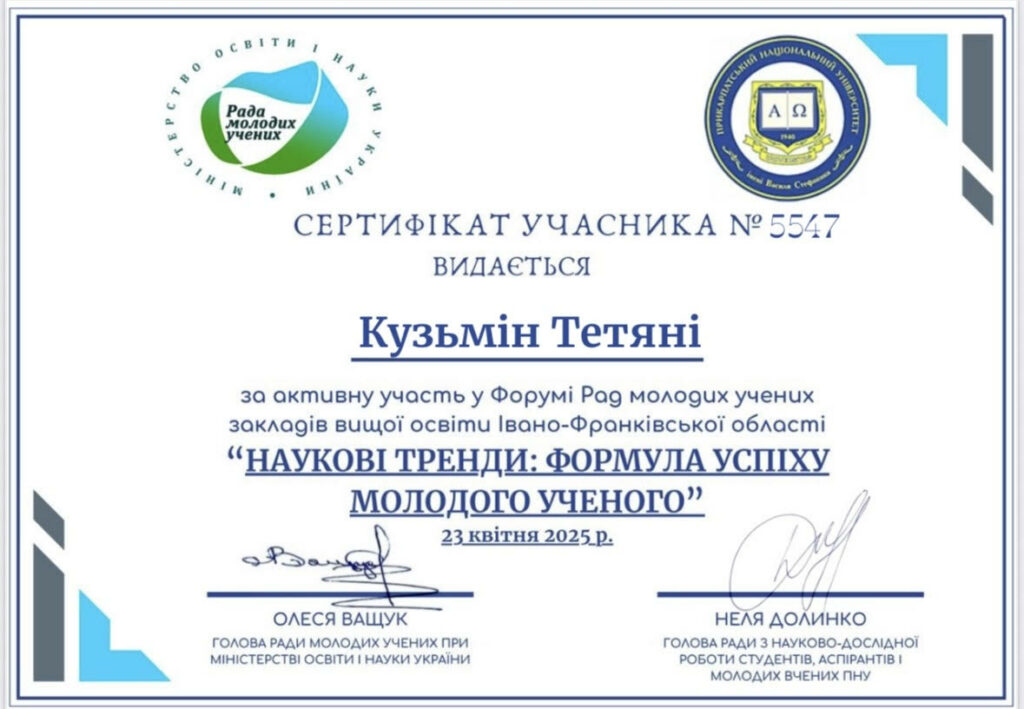 23 квітня 2025 року Ph.D., асист. кафедри обліку і оподаткування Тетяна КУЗЬМІН взяла участь у Форумі Рад молодих учених закладів вищої освіти Івано-Франківської області «Наукові тренди: Формула успіху молодого ученого» Захід зібрав понад 80 учасників, серед яких були молоді вчені, Читати далі